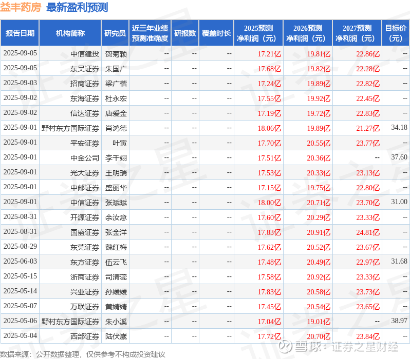 益丰药房(603939) 公司公布25年半年报,上半年公司实现营业收入117.22亿元,同比减少0.35%;实现归母净利润为8.80亿元,同比增长10.32%;实现扣非归母净利润为8.57亿元,同比增长9.08%。公司持续执行降本增效战略,且线上业务多元化创新持续发展,我们看好公司的长期发展,维持买入评级。 支撑评级的要点 25年上半年平稳发展。分行业来看,公司上半年零售业务实现收入101.99亿元,同比减少1.91%,毛利率为41.99%,较去年同期增加1.04个百分点;加盟及分销业务实现收入11.69亿元,同比增长17.20%,毛利率为10.97%,较去年同期增加1.41个百分点。分季度看,公司二季度单季实现营收57.13亿元,同比减少1.36%;归母净利润为4.31亿元,同比增长10.13%。上半年公司营收下降利润增加,主要系公司在2024年和今年上半年根据行业及经济发展状况及时做出策略性调整关停了部分门店,并放缓新店拓展,上半年,公司自建门店81家,关闭门店272家,新增加盟店208家,这导致2025年半年度营收同比略有下降。与此同时,通过部分门店关停、降本增效以及经营策略调整,公司盈利能力持续提升。 坚持“区域聚焦”战略,会员人数不断提升。公司始终坚持“区域聚焦、稳健扩张”的发展战略和“重点渗透、深度营销”的经营方针,公司通过门店网络的合理布局,迅速占领区域市场,截至2025年6月30日,公司在湖南、湖北、上海江苏、江西、浙江、广东、河北、北京、天津十省市拥有连锁药店14,701家。会员方面,公司累计会员人数达1.1亿,同比提升14.59%,会员销售占比为84.93% 线上业务持续发力,多元化创新有望为行业带来新增量。公司加快布局O2O渠道,上半年公司O2O直营门店超过10,000家,覆盖范围包含公司线下所有主要城市,上半年,公司互联网业务实现销售收入13.55亿元(含税),其中,O2O销售收入9.44亿元(含税),B2C销售收入4.11亿元(含税)。2025年4月,商务部、国家卫生健康委、国家药监局等12部门联合印发《促进健康消费专项行动方案》,首次系统规划健康消费领域的发展路径,并将零售药店定位为“健康促进核心场景”,引导零售药店拓展健康促进、营养保健等功能。支持“互联网+”医疗服务模式创新,依托全国统一的医保信息平台,深化医保电子处方应用,推动电子处方在定点医药机构顺畅流转,满足便捷医药服务需求。药品零售行业迎来多元创新的新阶段,看好公司的长期发展。 估值 受宏观经济影响,公司调整开店政策,使收入端受到一定影响,基于此,我们调整了公司的盈利预测,预测25-26年归母净利润为17.52/20.67亿元,原预测为(20.36/25.12)亿元,预计2027年归母净利润为22.72亿元,25-27年EPS分别为1.44/1.70/1.87亿元,对应PE为18.1/15.4/14.0倍,考虑到公司虽然关闭了部分门店,但持续执行降本增效战略,且线上业务、多元化创新持续发展,我们看好公司的长期发展,维持买入评级。 评级面临的主要风险 公司降本增效效果不达预期;公司线上业务销售不达预期。