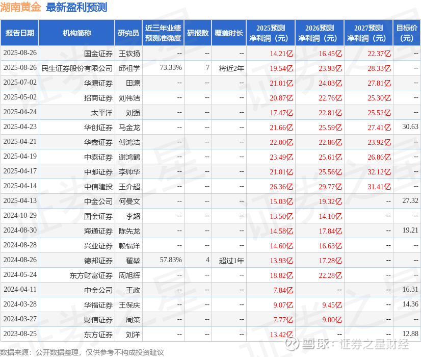 中邮证券有限责任公司李帅华,杨丰源近期对湖南黄金进行研究并发布了研究报告《金锑价格持续向好,静待公司业绩释放》,给予湖南黄金买入评级。