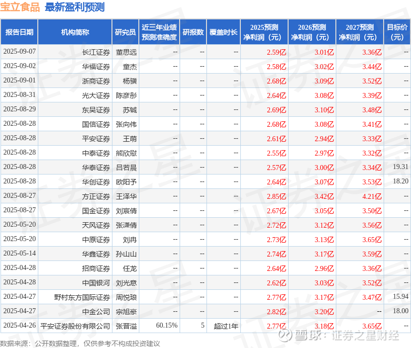 最新盈利预测明细如下: