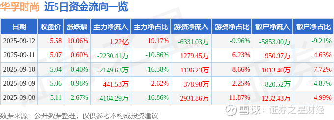 近5日资金流向一览见下表: