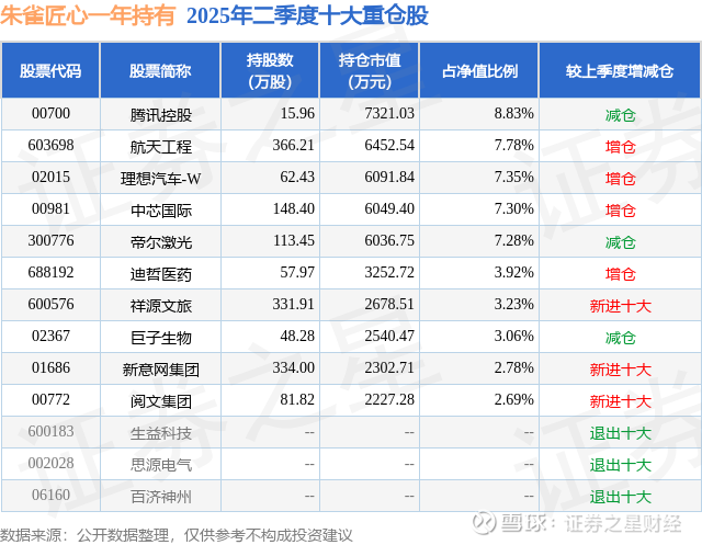 根据2025基金半年报公募基金重仓股数据,重仓该股的公募基金共4家,其中持有数量最多的公募基金为朱雀基金的朱雀匠心一年持有。朱雀匠心一年持有目前规模为8.29亿元,最新净值0.888(9月11日),较上一交易日上涨1.04%,近一年上涨46.85%。该公募基金现任基金经理为陈飞。陈飞在任的基金产品包括:朱雀企业优胜A,管理时间为2023年8月9日至今,期间收益率为14.67%;朱雀产业精选混合A,管理时间为2025年5月26日至今,期间收益率为14.93%;朱雀企业优选A,管理时间为2025年9月11日至今,期间收益率为0.0%。