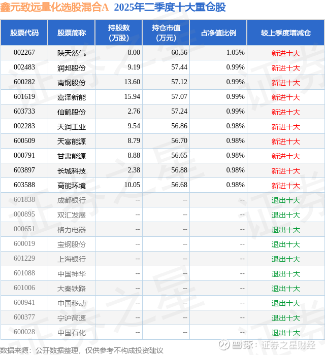 根据2025基金半年报公募基金重仓股数据,重仓该股的公募基金共2家,其中持有数量最多的公募基金为鑫元基金的鑫元致远量化选股混合A。鑫元致远量化选股混合A目前规模为0.21亿元,最新净值1.1355(9月11日),较上一交易日上涨0.98%。该公募基金现任基金经理为刘宇涛。刘宇涛在任的基金产品包括:鑫元鑫趋势灵活配置混合A,管理时间为2022年9月20日至今,期间收益率为15.62%;鑫元中证1000指数增强发起式A,管理时间为2022年11月28日至今,期间收益率为30.21%;鑫元国证2000指数增强A,管理时间为2023年8月10日至今,期间收益率为32.34%;鑫元浩鑫增强债券A,管理时间为2023年11月2日至今,期间收益率为5.97%。