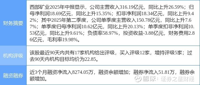 2025年7月27日,民生证券研究员邱祖学,袁浩发布了对西部矿业的研报《2025年中报点评:主要矿产品产量稳中有升,业绩稳健增长》,该研报对西部矿业给出“买入”评级。研报中预计2025-2027年公司将实现归母净利36.66、41.05、48.00亿元,对应7月25日收盘价的PE为11x、10x和9x,维持“推荐”评级。证券之星数据中心根据近三年发布的研报数据计算,该研报作者对此股的盈利预测准确度为78.2%。