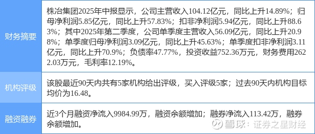 2025年8月18日,中邮证券研究员杨丰源,李帅华发布了对株冶集团的研报《精锌加工费触底反弹,水口山业绩表现亮眼》,该研报对株冶集团给出“买入”评级。研报中预计2025-2027年,随着金银价格中枢稳健上移,公司矿山产销量稳中有升,预计归母净利润为12.89/13.52/14.59亿元,YOY为63.83%/4.93%/7.92%,对应PE为10.20/9.72/9.01,维持“买入”评级。证券之星数据中心根据近三年发布的研报数据计算,该研报作者对此股的盈利预测准确度为75.78%。