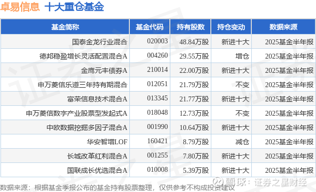 根据2025基金半年报公募基金重仓股数据,重仓该股的公募基金共20家,其中持有数量最多的公募基金为国泰基金的国泰金龙行业混合。国泰金龙行业混合目前规模为8.34亿元,最新净值0.3684(9月11日),较上一交易日上涨3.57%,近一年上涨47.36%。该公募基金现任基金经理为陈异。