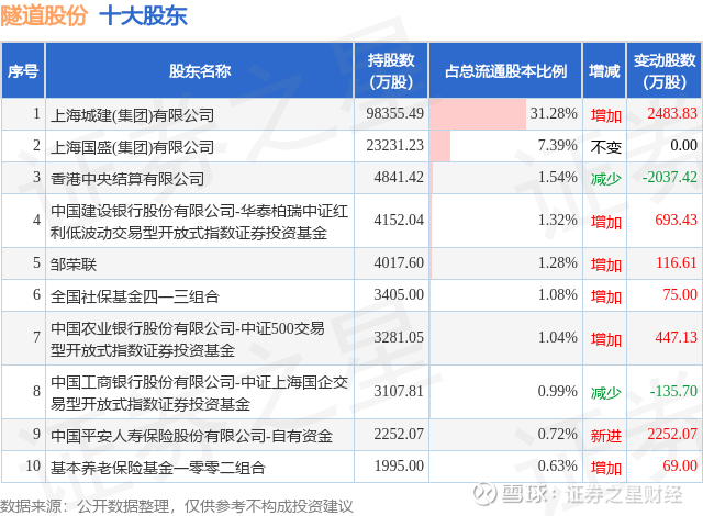 根据隧道股份2025年中报公布的十大股东详情如下: