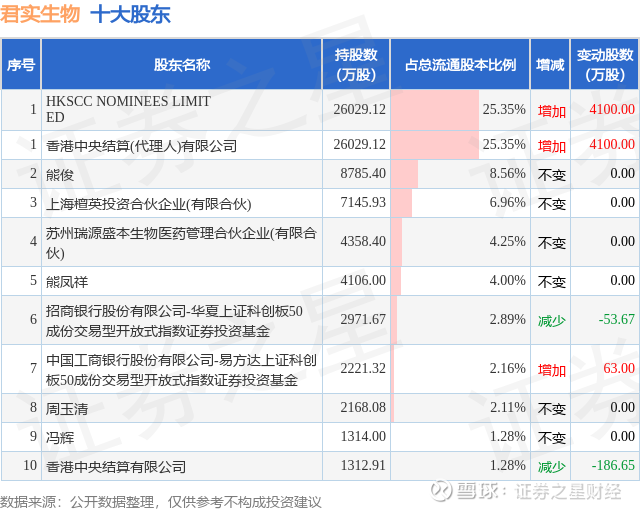 根据君实生物2025年中报公布的十大股东详情如下: