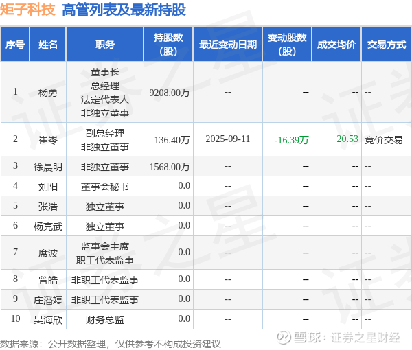 矩子科技近半年内的董监高及核心技术人员增减持详情如下: