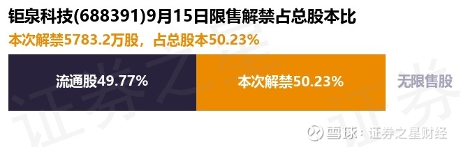 证券之星消息,根据市场公开信息整理,钜泉科技(688391)于9月15日将有5783.2万股限售股份解禁,为公司首发原股东限售股份,占公司总股本50.23%。(本次数据根据历史公告整理得出,实际情况以上市公司最新公告为准)本次解禁后,公司已无限售股份。具体如下图所示: