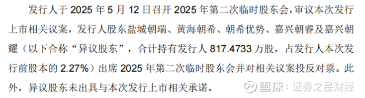 然而,在推进上市时,麦田能源却意外遭遇股东“叫板”。招股书显示,麦田能源于5月12日召开2025年第二次临时股东会,审议本次发行上市相关议案,股东盐城朝瑞、黄海朝希、朝希优势、嘉兴朝睿及嘉兴朝耀(以下合称“异议股东”)对相关议案投反对票。此外,异议股东未出具与本次发行上市相关承诺。