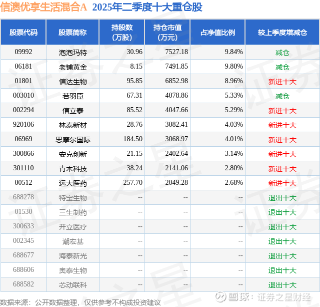 根据2025基金半年报公募基金重仓股数据,重仓该股的公募基金共4家,其中持有数量最多的公募基金为信达澳亚基金的信澳优享生活混合A。信澳优享生活混合A目前规模为2.79亿元,最新净值1.2346(9月12日),较上一交易日上涨0.77%,近一年上涨73.06%。该公募基金现任基金经理为杨珂。杨珂在任的基金产品包括:信澳健康中国混合A,管理时间为2020年5月13日至今,期间收益率为58.89%;