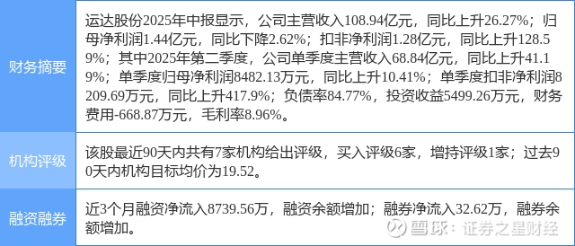2025年8月28日,国金证券研究员姚遥发布了对运达股份的研报《风机盈利明显修复,弹性有望持续释放》,该研报对运达股份给出“买入”评级。研报中预测2025-2027年归母净利润分别为6.2、12.8、17.6亿元,对应PE为21、10、7倍,维持“买入”评级。证券之星数据中心根据近三年发布的研报数据计算,该研报作者对此股的盈利预测准确度为75.55%。