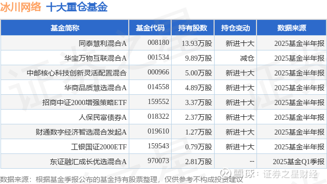重仓冰川网络的公募基金请见下表:
