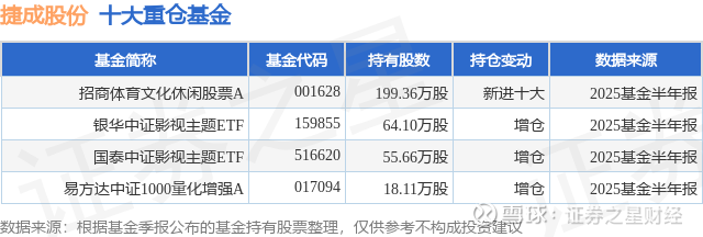根据2025基金半年报公募基金重仓股数据,重仓该股的公募基金共4家,其中持有数量最多的公募基金为招商基金的招商体育文化休闲股票A。招商体育文化休闲股票A目前规模为2.56亿元,最新净值1.956(9月12日),较上一交易日下跌1.01%,近一年上涨69.35%。该公募基金现任基金经理为文仲阳。文仲阳在任的基金产品包括:招商丰盈积极配置混合A,管理时间为2024年3月12日至今,期间收益率为25.36%。