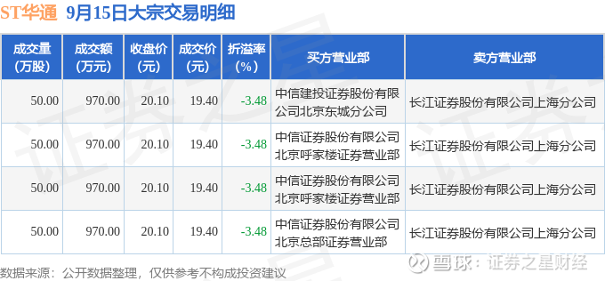 证券之星消息,9月15日ST华通发生大宗交易,交易数据如下: