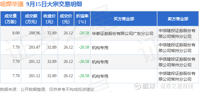 证券之星消息,9月15日哈焊华通发生大宗交易,交易数据如下: