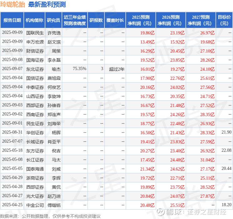 最新盈利预测明细如下: