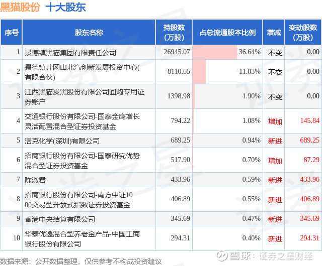 根据黑猫股份2025年中报公布的十大股东详情如下: