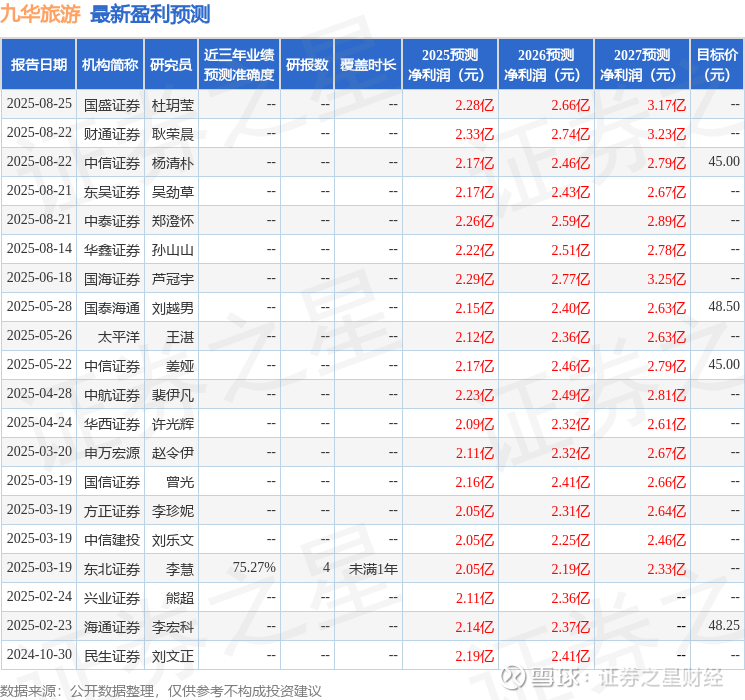 九华旅游2025年中报显示,公司主营收入4.83亿元,同比上升22.26%;归母净利润1.42亿元,同比上升23.96%;扣非净利润1.38亿元,同比上升26.63%;其中2025年第二季度,公司单季度主营收入2.48亿元,同比上升15.65%;单季度归母净利润7303.14万元,同比上升17.38%;单季度扣非净利润7125.92万元,同比上升18.63%;负债率15.34%,投资收益434.47万元,财务费用-43.49万元,毛利率54.6%。