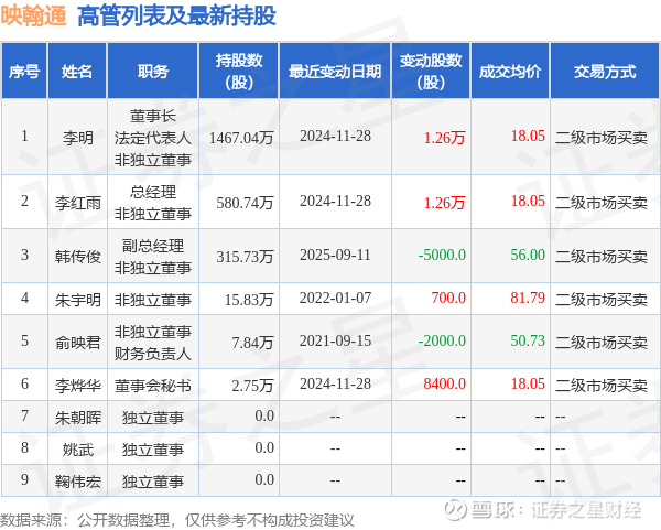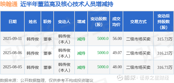 映翰通近半年内的董监高及核心技术人员增减持详情如下: