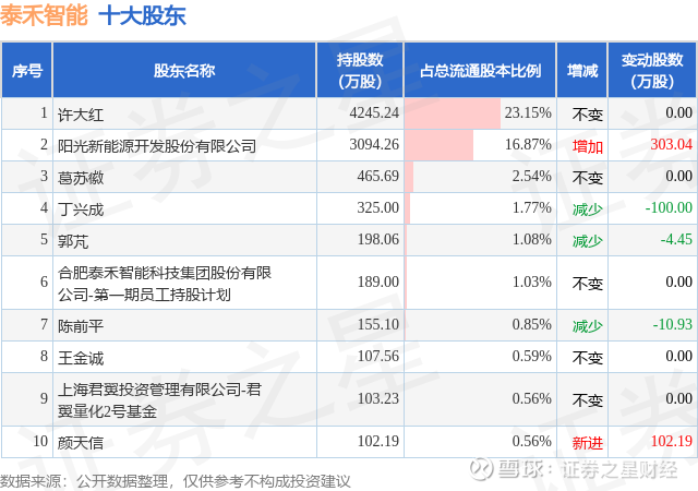 根据泰禾智能2025年中报公布的十大股东详情如下: