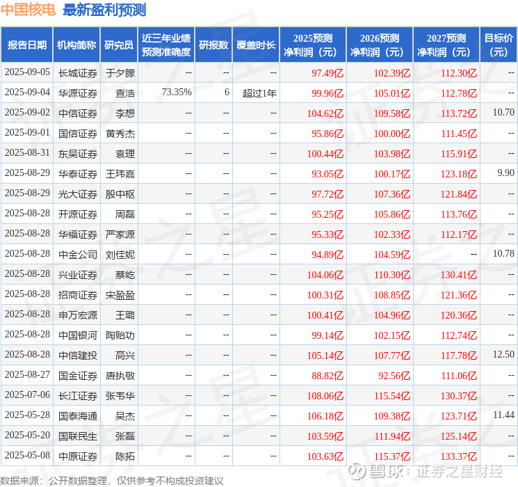 证券之星消息,2025年9月15日中国核电(601985)发布公告称公司于2025年9月11日接受机构调研,长江证券、华泰保兴、建信保险、华泰资管、上海汉鸿私募基金、上海禾昇投资管理、东吴证券、国信证券、华福证券、开源证券、中信证券、鹏华基金、国泰海通证券、兴业证券、华源证券、天风证券、申万宏源、长城证券、国盛证券、招商证券、华泰证券、华泰柏瑞基金、太保资产、汇添富基金、嘉实基金、广发基金、博时基金、银华基金参与。