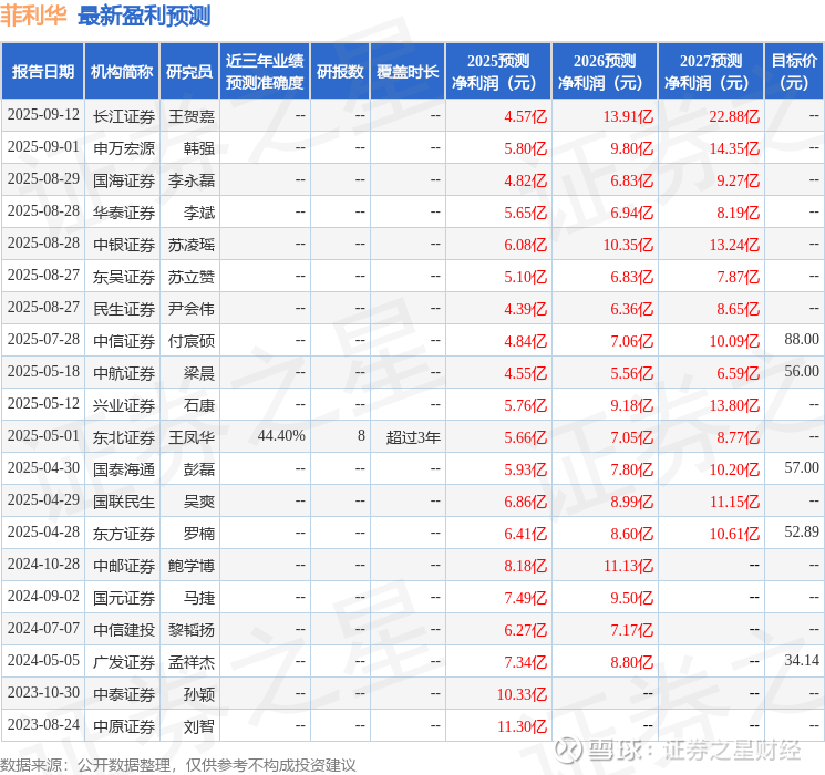 证券之星数据中心根据近三年发布的研报数据计算,东北证券王凤华研究员团队对该股研究较为深入,近三年预测准确度均值为44.4%,其预测2025年度归属净利润为盈利5.66亿,根据现价换算的预测PE为78.75。