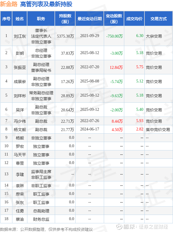 新金路的高管列表及最新持股情况如下: