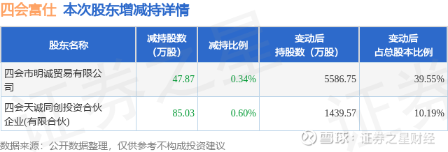 股东增减持详情见下表:
