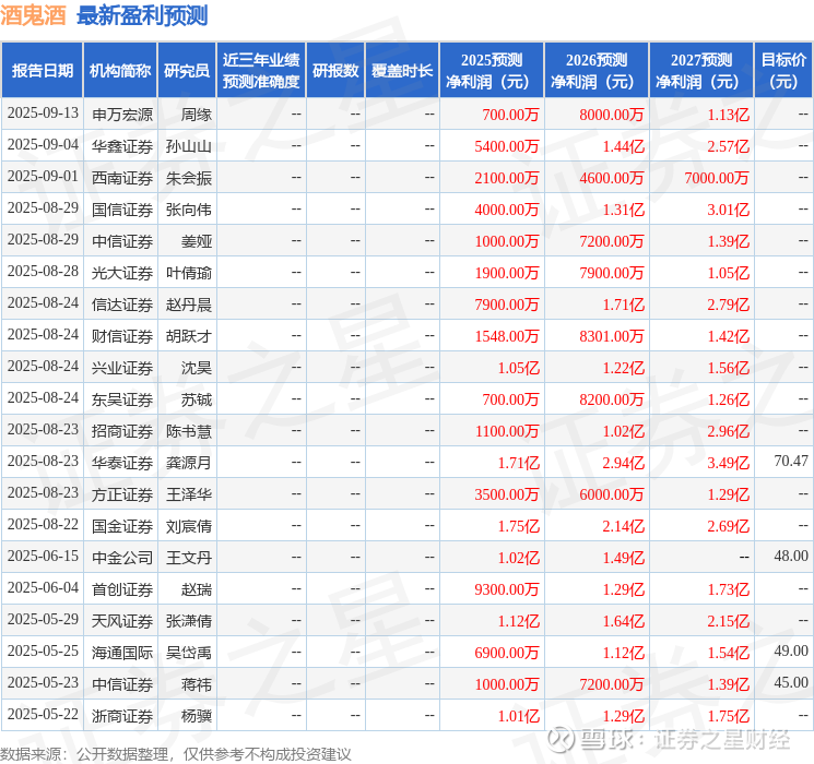 酒鬼酒2025年中报显示,公司主营收入5.61亿元,同比下降43.54%;归母净利润895.5万元,同比下降92.6%;扣非净利润842.07万元,同比下降92.79%;其中2025年第二季度,公司单季度主营收入2.17亿元,同比下降56.57%;单季度归母净利润-2275.83万元,同比下降147.77%;单季度扣非净利润-2302.5万元,同比下降148.77%;负债率23.31%,投资收益-39.64万元,财务费用-738.77万元,毛利率68.58%。