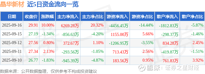 9月16日的资金流向数据方面,主力资金净流入6269.28万元,占总成交额20.32%,游资资金净流出4456.45万元,占总成交额14.44%,散户资金净流出1812.83万元,占总成交额5.87%。