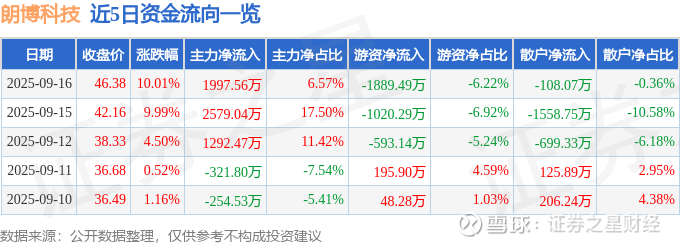证券之星消息,朗博科技9月16日涨停收盘,收盘价46.38元。该股于10点2分涨停,6次打开涨停,截止收盘封单资金为1357.24万元,占其流通市值0.28%。