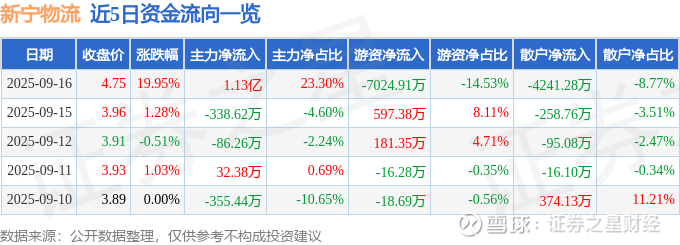 证券之星消息,新宁物流9月16日涨停收盘,收盘价4.75元。该股于10点7分涨停,未打开涨停,截止收盘封单资金为5771.95万元,占其流通市值2.72%。