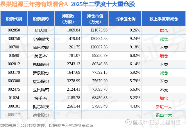 重仓科达利的前十大公募基金请见下表: