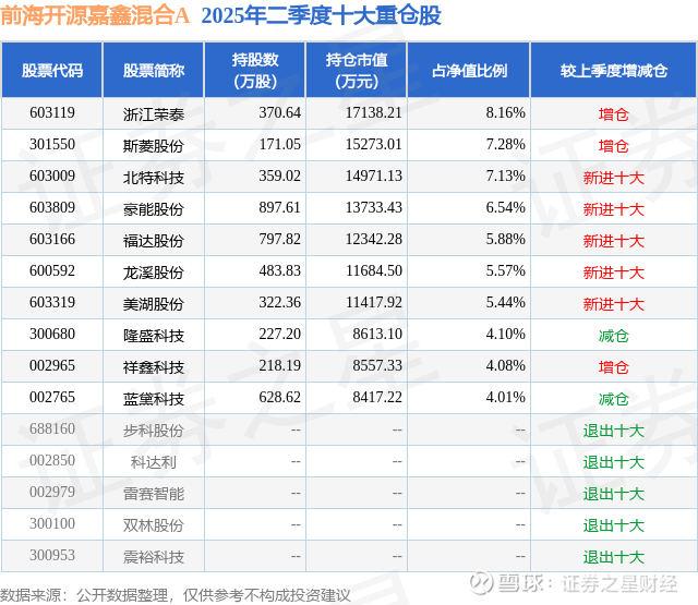 重仓蓝黛科技的公募基金请见下表: