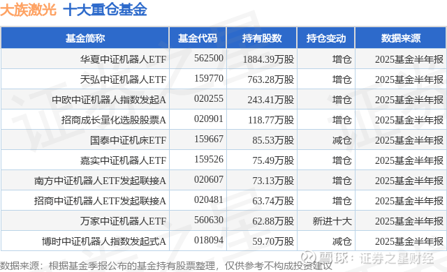 根据2025基金半年报公募基金重仓股数据,重仓该股的公募基金共20家,其中持有数量最多的公募基金为华夏基金的华夏中证机器人ETF。华夏中证机器人ETF目前规模为144.71亿元,最新净值1.0397(9月15日),较上一交易日上涨0.22%,近一年上涨88.73%。该公募基金现任基金经理为华龙。华龙在任的基金产品包括:华夏饲料豆粕期货ETF联接A,管理时间为2022年8月22日至今,期间收益率为17.09%;华夏上证50AH优选指数A,管理时间为2022年8月22日至今,期间收益率为28.02%;华夏中证机器人ETF发起式联接A,管理时间为2023年5月31日至今,期间收益率为25.49%;华夏消费电子ETF联接A,管理时间为2023年6月2日至今,期间收益率为58.28%。