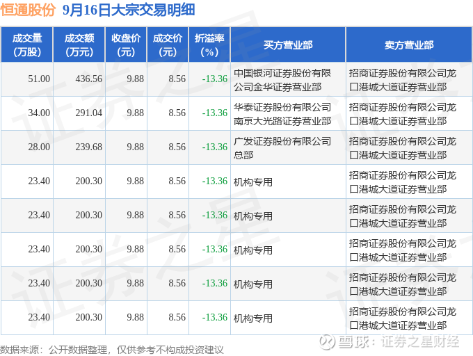 证券之星消息,9月16日恒通股份发生大宗交易,交易数据如下:
