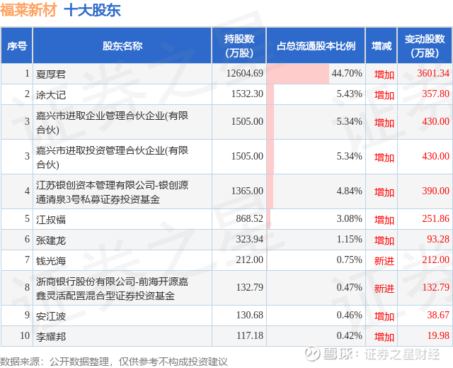 根据福莱新材2025年中报公布的十大股东详情如下: