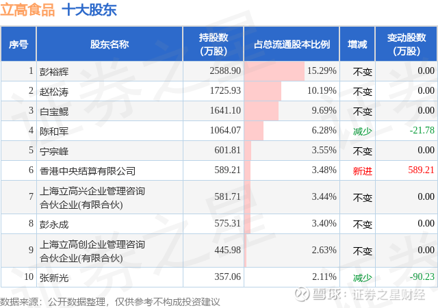 根据立高食品2025年中报公布的十大股东详情如下: