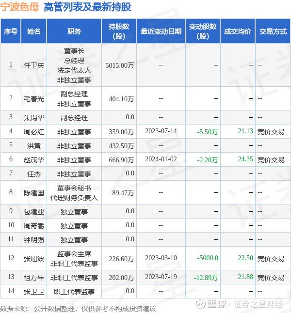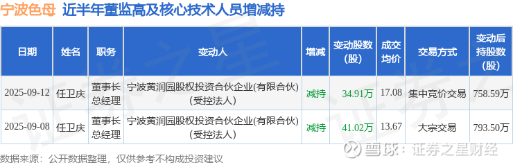 宁波色母近半年内的董监高及核心技术人员增减持详情如下: