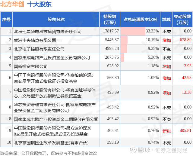 根据北方华创2025年中报公布的十大股东详情如下: