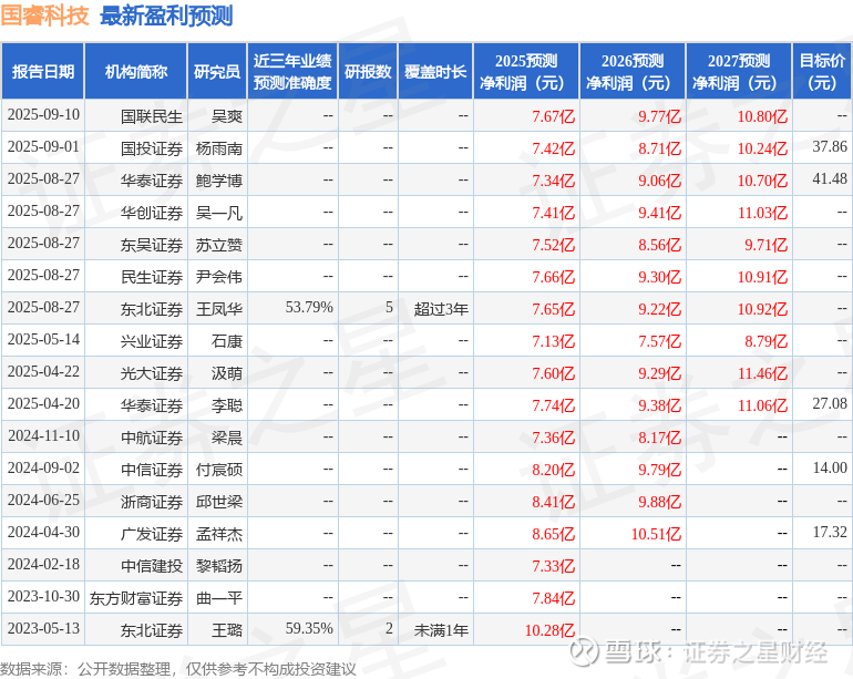 以下是详细的盈利预测信息: