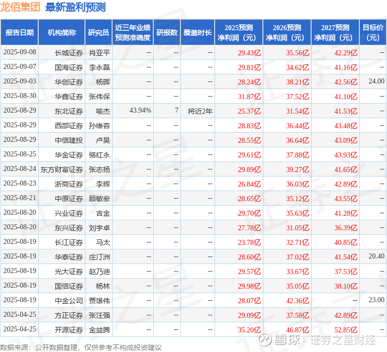 最新盈利预测明细如下: