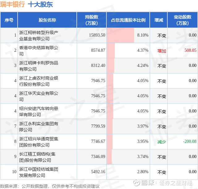 根据瑞丰银行2025年中报公布的十大股东详情如下: