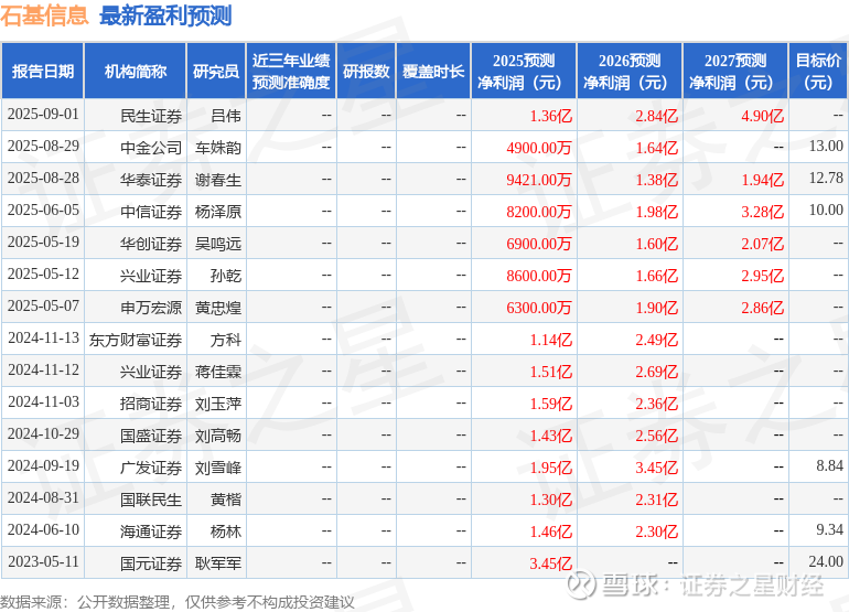 以下是详细的盈利预测信息: