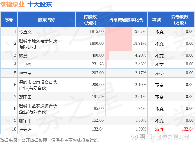 根据泰福泵业2025年中报公布的十大股东详情如下: