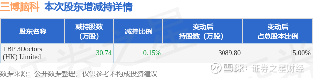 证券之星消息,9月17日三博脑科发布公告《三博脑科:简式权益变动报告书》,其股东TBP 3Doctors (HK) Limited于2025年9月11日至2025年9月17日间合计减持30.74万股,占公司目前总股本的0.1492%,变动期间该股股价上涨3.56%,截止9月17日收盘报61.59元。