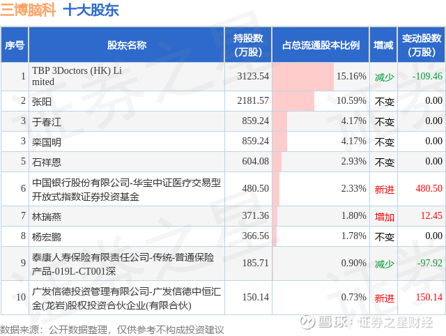 根据三博脑科2025年中报公布的十大股东详情如下: