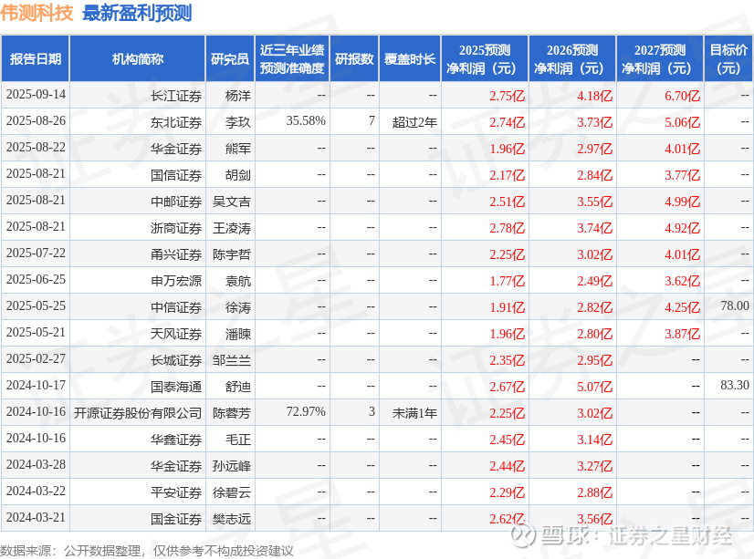 最新盈利预测明细如下: