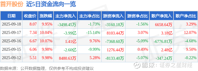 证券之星消息,首开股份9月18日涨停收盘,收盘价8.07元。该股于9点44分涨停,10次打开涨停,截止收盘封单资金为6181.6万元,占其流通市值0.3%。